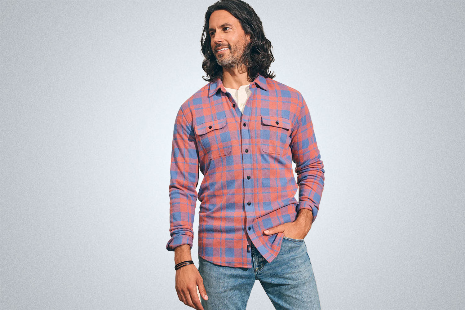 We’re not entirely sure how one of the softest shirt jackets we tested isn’t 100% cotton, but Faherty, a men’s brand label out of the Northeast making simple clothes for regular fellas, actually employed a polyester-viscose-spandex blend that has four-way stretch (a method favored by most activewear brands these days). That means this shirt has a bit more backbone, won’t shrink, and allows for a heightened range of motion than you’d normally find in a flannel button-down.