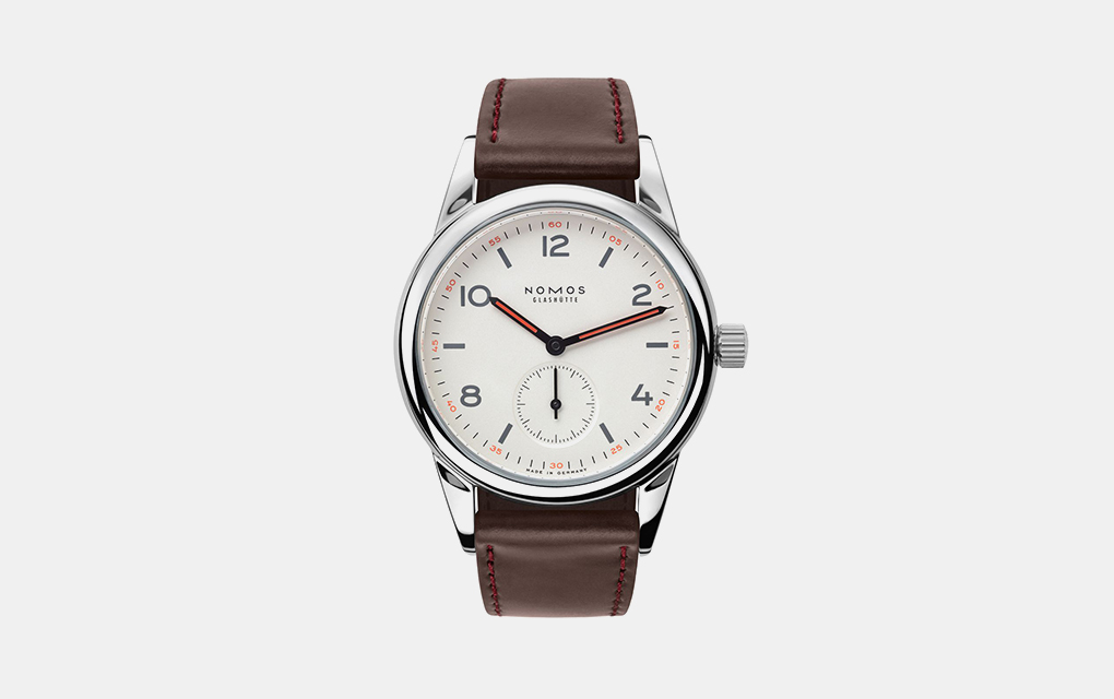 While most of the watches featured on this list are tool watches, this spectacular, hand-wound Club from NOMOS deserves a spot for its beautiful, Bauhaus-inspired aesthetics, excellent wearability, and excellent synthesis of classic features. Measuring 36mm in polished stainless steel, its galvanized, silver-plated white dial with lumed Arabic and dash numerals; sub-seconds; and orange accents is both distinctly handsome and highly legible. Meanwhile, its hand-wound Alpha movement and brown Horween leather strap finish a highly usable package packing 100m of water resistance into a case just 8.2mm. (Our advice? Add an engraving to really give it some personalized style!)