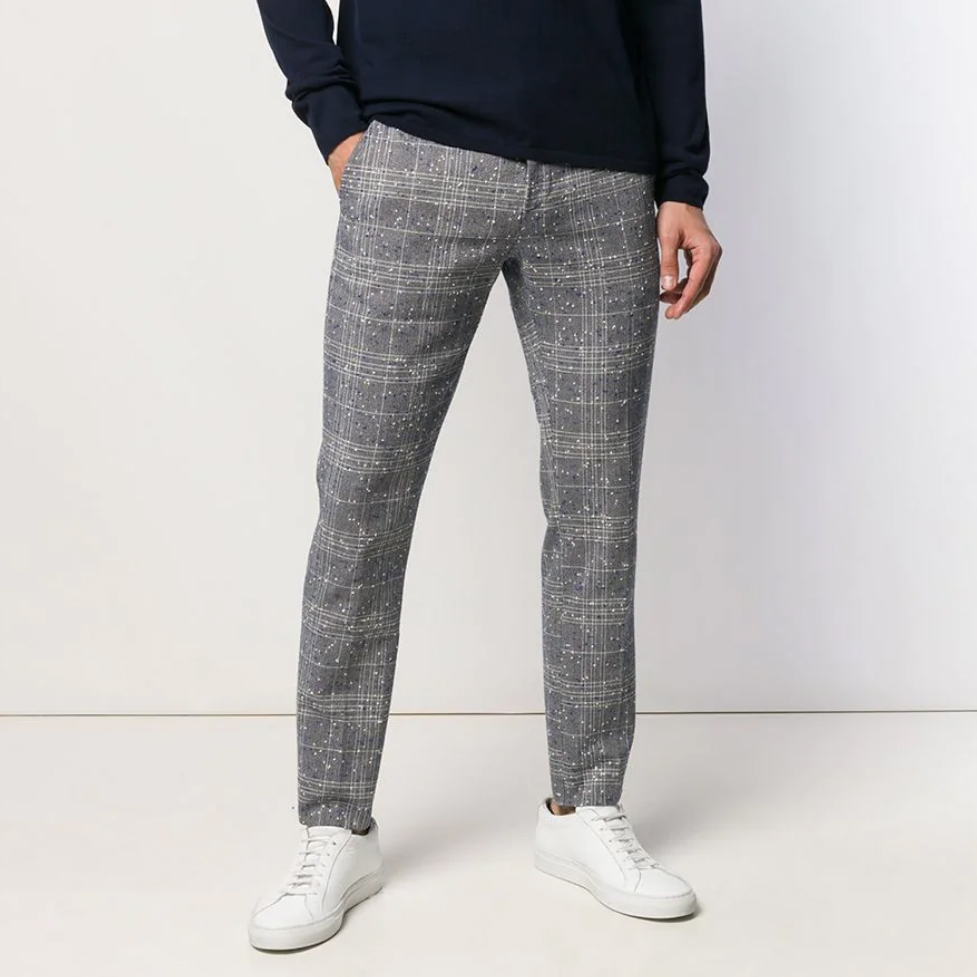 A more relaxed (sensing a theme here?) drawstring lounge pant is a great left-of-center jean alternative for a classic T-shirt and leather jacket getup. Extra points for the necklaces and artful half-tuck.