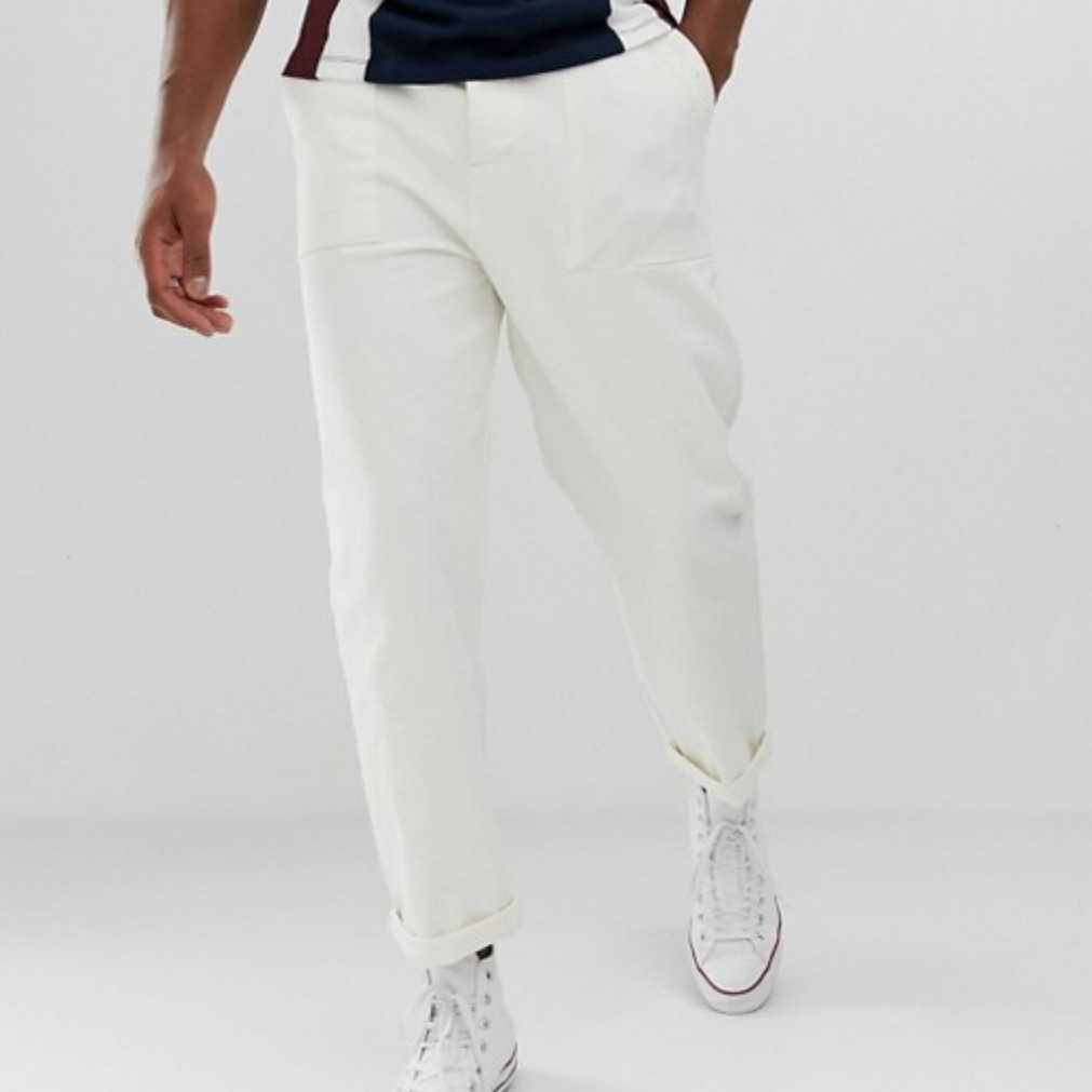 The proper way to wear a graphic tee: stick to black or white and aim for a graphic with a simple but interesting color scheme (the pink/purple ’80s vibes here are spot-on). Then grab a relaxed pant in the opposite color of the shirt — not saying they have to be cropped wide-whale cords, but something that adds to the slouch vibe without feeling sloppy. Add crispy white sneakers and a pair of socks that play off the tee if you’re feeling saucy. Massive shades optional but recommended.