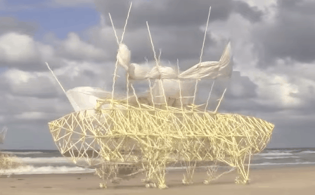 Dutch artist Theo Jansen’s “Strandbeest“—or “beach creature”—has a skeleton made out of yellow plastic tubes and is completely powered by the wind. Watch various Strandbeests in action below.