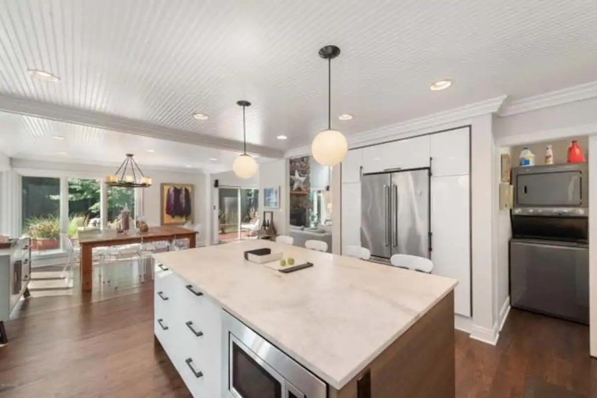 What you’re getting: So much room for activities! This six-bedroom, 4.5-bath property is plain unruly. Part art installation, part luxury home, it seems impossible to not check a box for everyone in your extended pod with this listing. Outside is a basketball court, private deck with grill, fire pit and sectional seating (plus a table for eight). Inside there’s a sunken library room, ping-pong table, treadmill, peloton bike, three person infrared sauna and omnipresent art, color and texture.