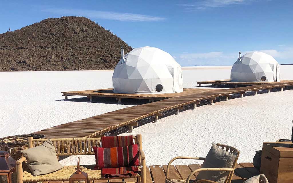 In brief: The Bolivian salt flats make an incredible setting for this severe but stunning hotel, with white dome lodges situated nearly over 11,000 feet up at the foot of the Tunupa volcano. Set off on excursions to “islands” on the salt plain and local villages.