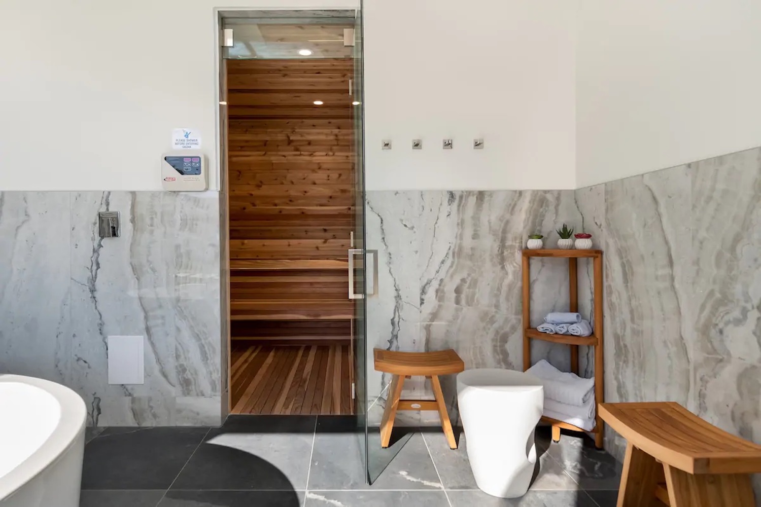 Vibe: There’s a private spa lounge on-site that includes a dry sauna and steam room, plus a cold rinse and soaking tub. What more do you need to know?