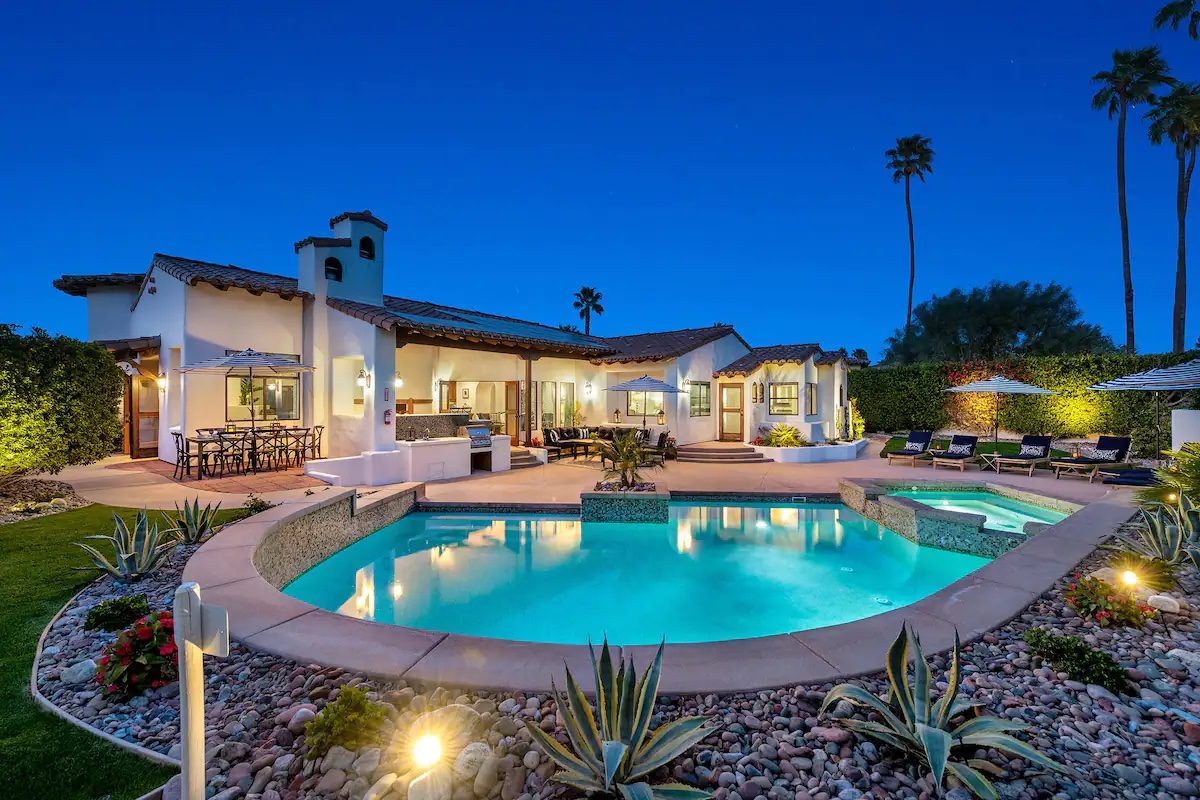 Vibe: Warm and welcoming, this historic Palm Springs home exemplifies indoor/outdoor living with an outdoor kitchen, outdoor fireplace nook and even an outdoor dining table with seating for eight. All that, plus a heated saltwater pool and jacuzzi make this an idyllic getaway.