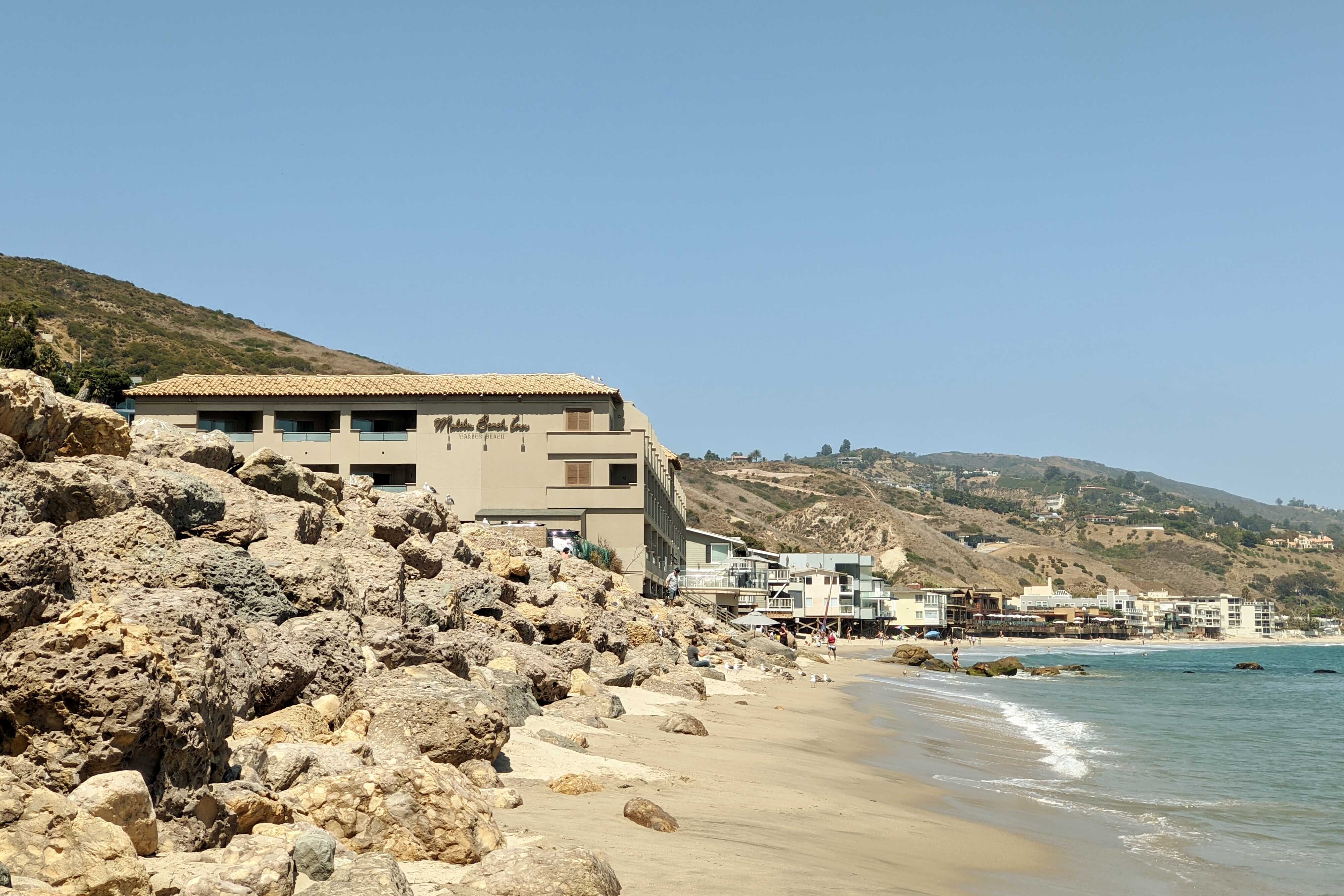 I made my way to the Malibu Beach Inn, with a right turn directly off the PCH onto a barely visible driveway, and voila, an exclusive and lavish world opened to me, the beachfront paradise of Malibu waiting within. The hotel is along Carbon Beach, but more properly atop Carbon Beach, in such proximity to the water that the property’s beach chairs need to be removed during high tide. In-room bars, meanwhile, are so well stocked you can stir yourself up a Negroni or Manhattan without interacting with a soul, ideal for pandemic travel, while a detailed distancing and sanitizing plan is rigorously pursued.