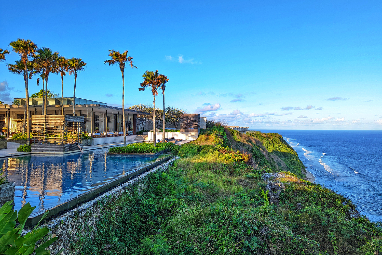 A view of the oceanside cliff at Alila Villas Uluwatu in Bali, Indonesia