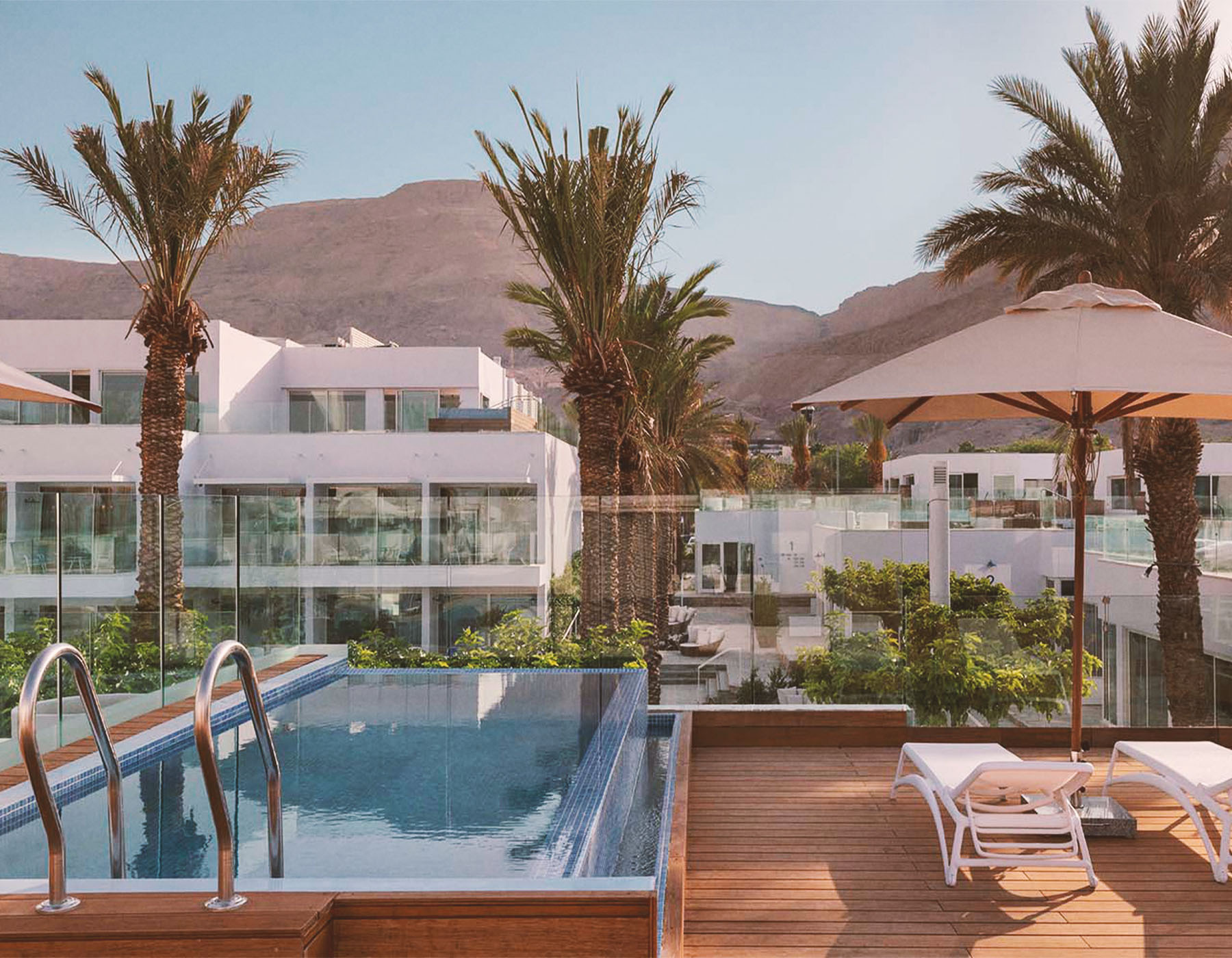 Stay: Milos is a Greek-style hotel (among other things, it was built using stones brought over from Greece and there are Greek performers by the pool) and one of the newest hotels at the Dead Sea (it opened in May 2019). It has 162 rooms, 20 private freshwater pools, a Dead Sea water pool, a private beach and gardens scattered all over the property — a rarity in the desert.