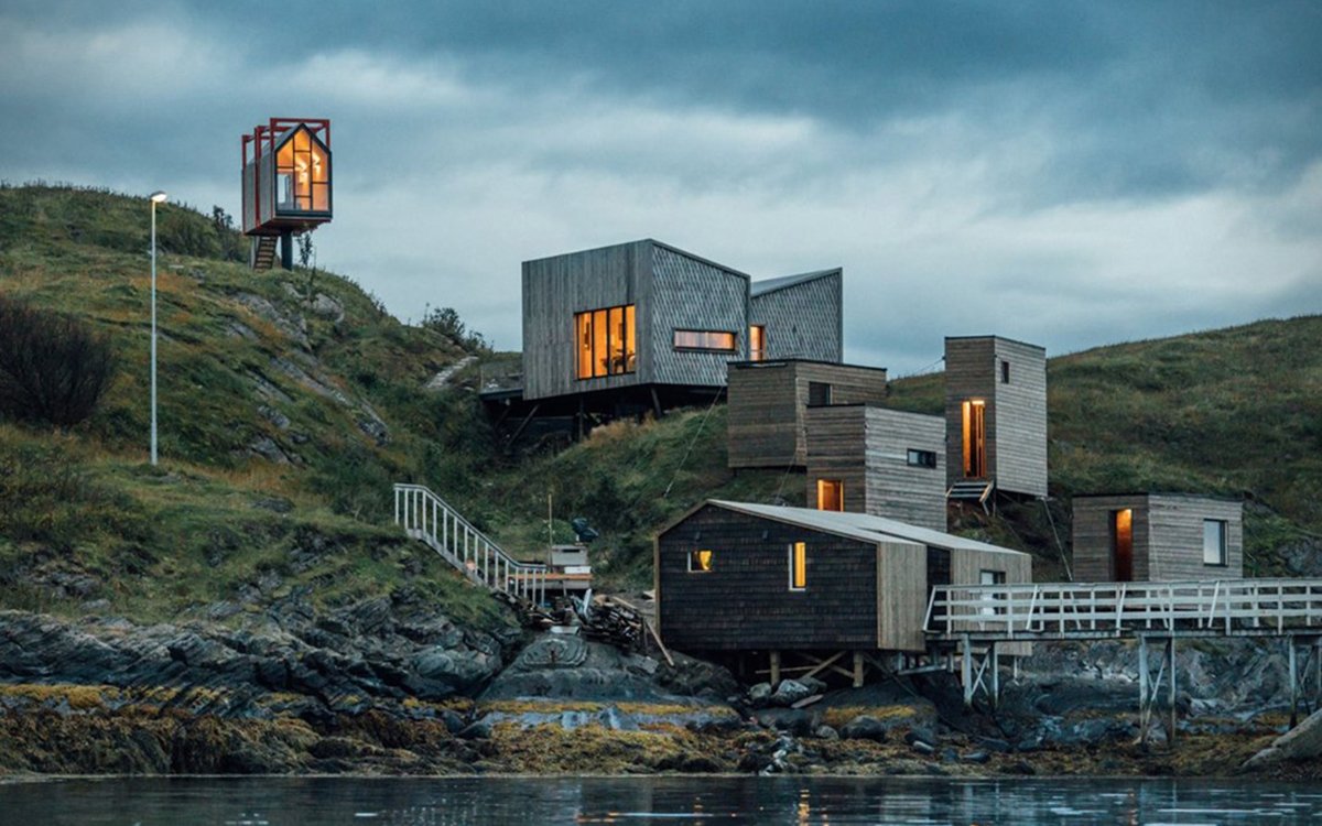 Located in the far north of Norway’s Arctic archipelago on the island of Fleinvaer, the nine-cabin Fordypningsrommet retreat is about as isolated of a vacation destination as you can ask for.