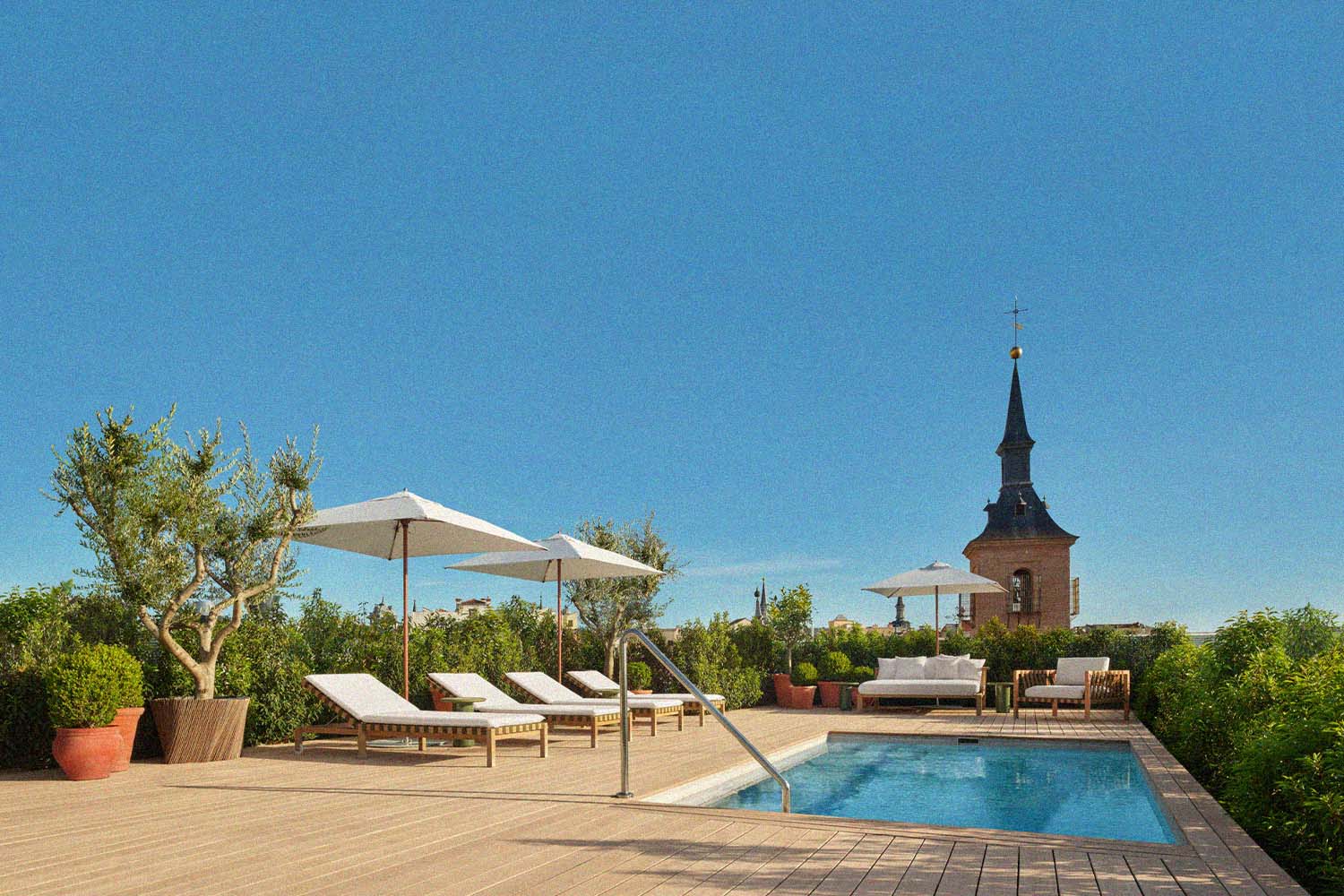 A swanky place to see and be seen, The Madrid EDITION boasts the city’s biggest rooftop pool and whose fourth-floor perch is shared with much buzzed-about Pisco bar, Oroya. Below are 200 rooms and suites, some with private terraces, all decorated in a palette of chic whites and neutrals — from the sofas and faux fur throws, to flowering orchids. Bathrooms are stocked with full-sized Le Labo products in the signature EDITION black tea scent. Located in the lively Sol neighborhood, “Kilometre Zero” (the geographical center of Spain), Plaza Mayor, Gran Vía and the Royal Palace are within easy distance. With its inviting sofas and pool table hewn from a slab of white Bianco Neve marble, the Lobby Bar is a central hub for guests and locals reached by the oft-photographed floating EDITION staircase. The hotel is also home to Jerónimo, the first European restaurant from award-winning Mexican chef Enrique Olvera.