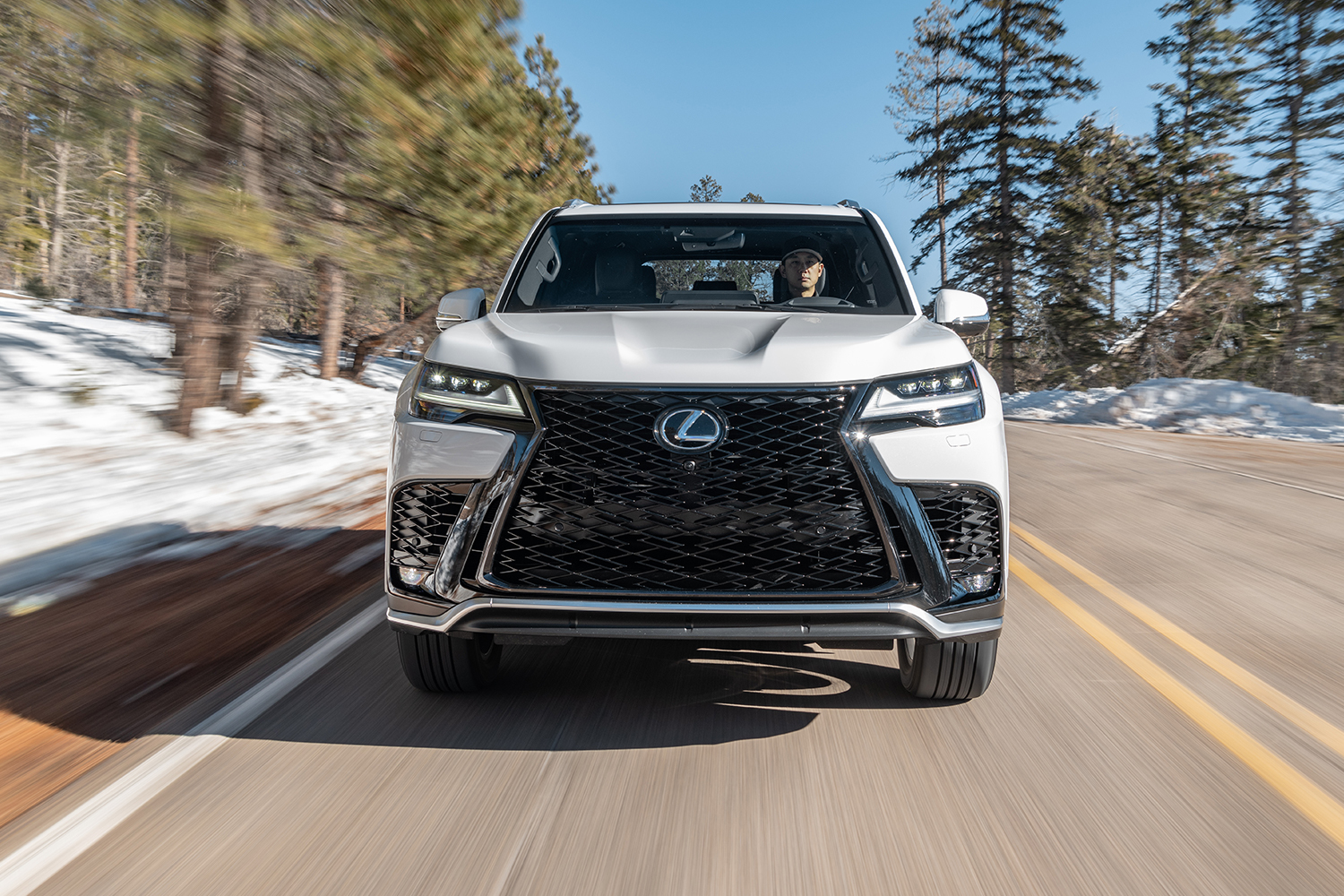 This lack of handling cohesion can be attributed to the maintenance of a solid rear axle, as well as a heavy-duty, low-range four-wheel drive system and the kind of overbuilt construction required to convince Lexus owners that the LX can cosplay at the nearest overlanding party. Available in a Land Cruiser-baiting base trim that swaps in 18-inch rims for the 22ers found elsewhere, the LX is still hobbled by the large overhangs of its bodywork, particularly its deep-driving front grille, plastic lower fascia at the rear and tucked running boards, all of which run the risk of rock damage even with the truck’s respectable 8.9 inches of ground clearance. Still, there are plenty of electronic driving systems included to help you crawl as deep into the bush as your insurance company is comfortable with.