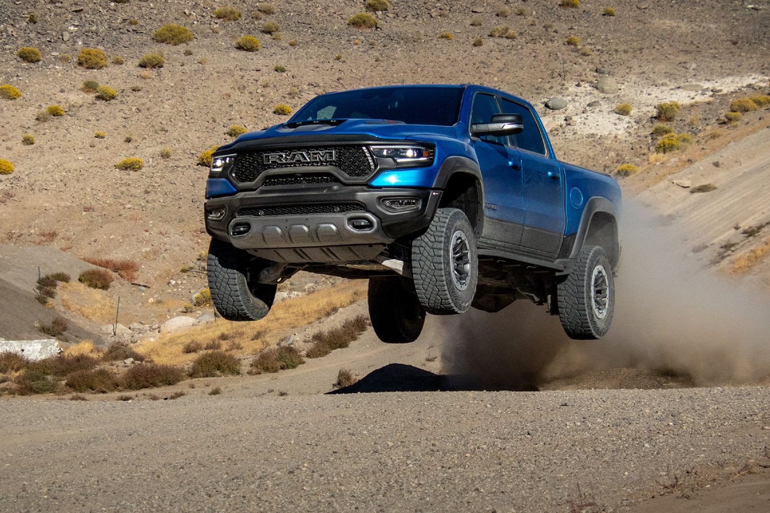 Of course, this truck was never intended to be caroused anywhere other than the wide open spaces of your nearest dune park. Much like the Raptor, the Ram TRX’s shocks and springs are design to maximize travel and absorb as much punishment as possible while being dive-bombed into the next set of ruts or rocks, encouraging any effort to get its bellicose bulk airborne so it can stick the landing with its remote-reservoir dampers.