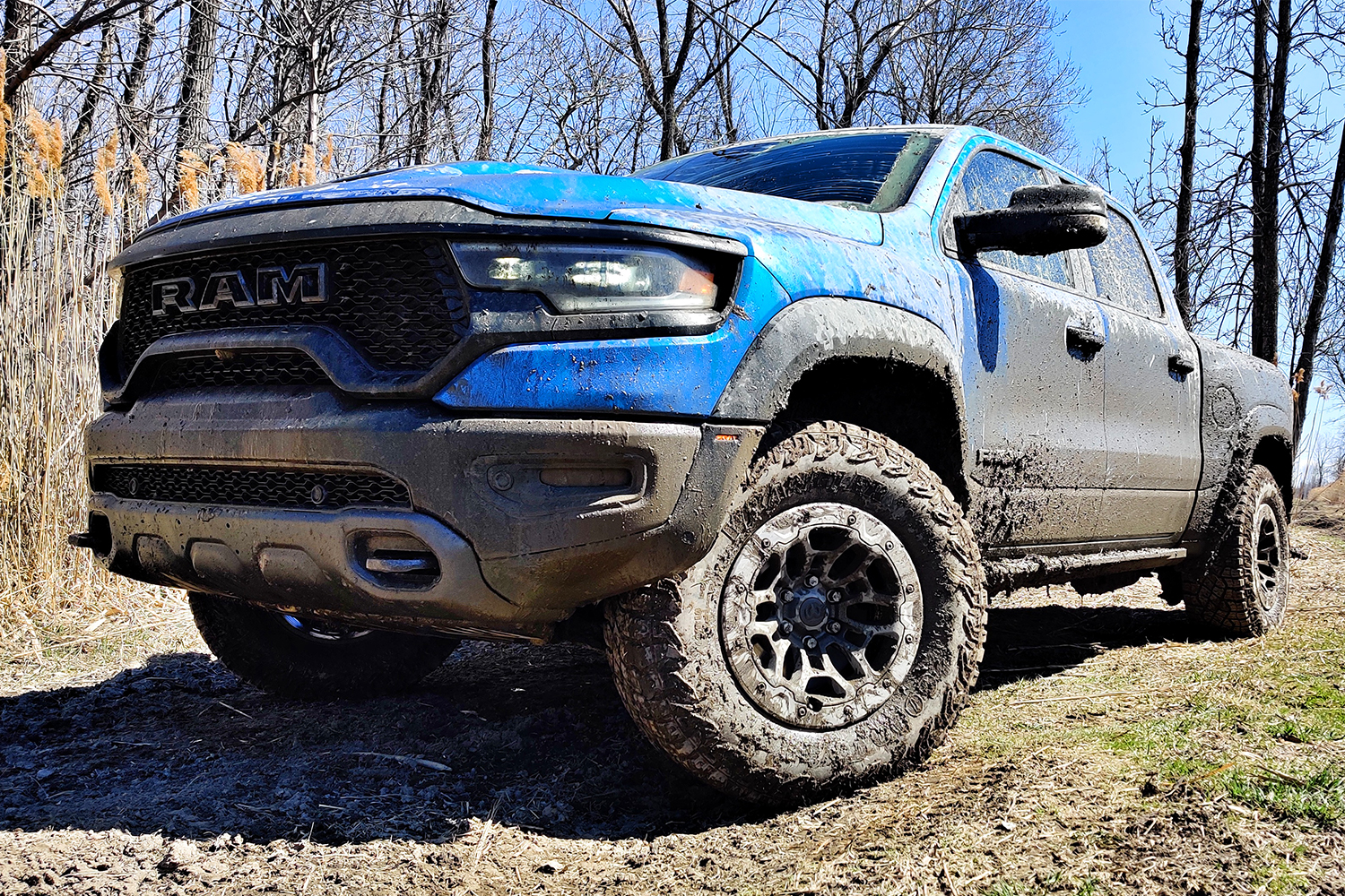 Most impressive is the truck’s level of sheer control when bounding from one high-speed bump to the next. Even with the throttle pinned the TRX outlasted my own nerve as I banged through muddy moguls, never once putting a wheel out of place or pointing me dramatically off-course on the rebound. This sets it apart from other, less sophisticated off-roaders that aren’t nearly as composed when confronted with rapidly changing terrain. Yes, the Ram’s size is a liability on tighter trails, but out in the open there are few, if any, 4x4s that can approach its terminal velocity as it mows down the moor.