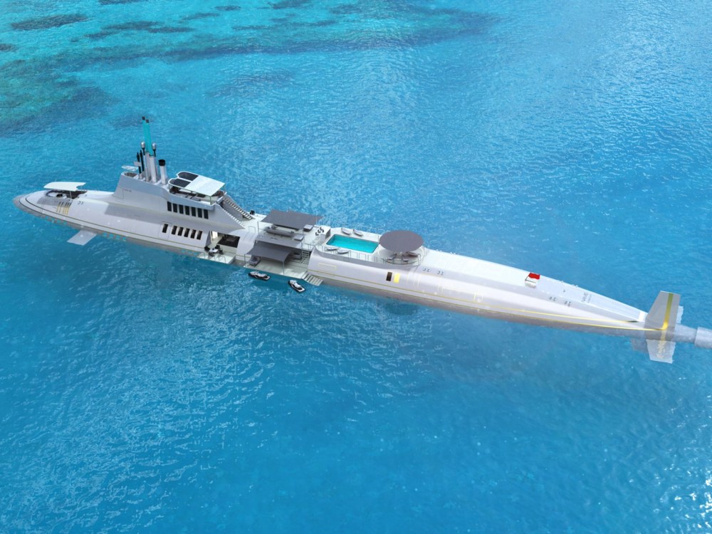 Migaloo, an Australian yacht company, unveiled its latest concept design for a private submersible yacht. The amenities alone are enough to distinguish it from your average submarine. Each yacht is fully customizable; and Migaloo is focusing on providing luxury options like a movie theater, wine cellar, swimming pool, helipad, and library. When cruising at sea level, the yacht’s sides retract to unveil an open lounge deck. Take a look at a few of the concept images below, as well as a video for Migaloo’s luxurious submersible yacht.
