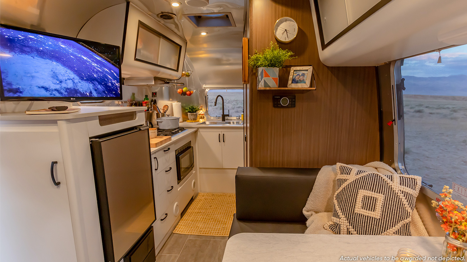 The interior of an Airstream Caravel 20FB travel trailer being given away by Omaze