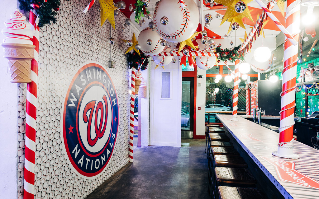This year they’re paying homage to the Washington Nationals’ historic World Series win earlier this fall with candy cane baseball swirls, baby sharks, and giant bats and balls. Last year’s popular Jewish-themed room is back too, a tongue-in-cheek reference to spending Christmas day at the movies and eating Chinese food.