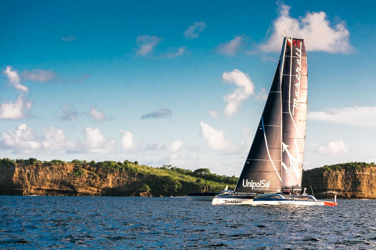 Team Maserati was hoping the new boat would break the record for the 2,865-nautical mile race. To many, though, just completing the journey to Grenada under such adverse circumstances is a feat in itself. “The trade wind conditions that form, arriving here with a high-pressure area and a not-too-rough sea are ideal for getting a boat like ours to fly. We made an average of 24 knots with peaks of 40 and had one blistering day when we were powering along consistently at over 30 knots,” Soldini said.