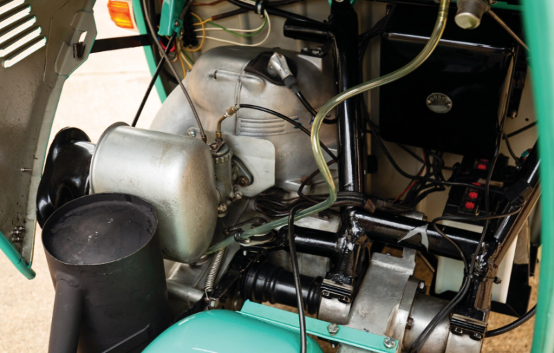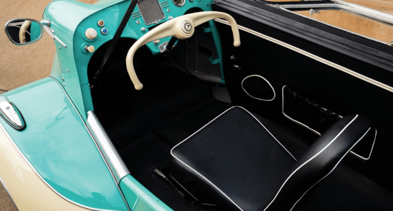 Finished in high-quality turquoise BASF urethane paint with very few visible signs of wear throughout, this ’59 Messerschmitt KR 200 could fetch somewhere in the neighborhood of $100,000 based on previous sales.