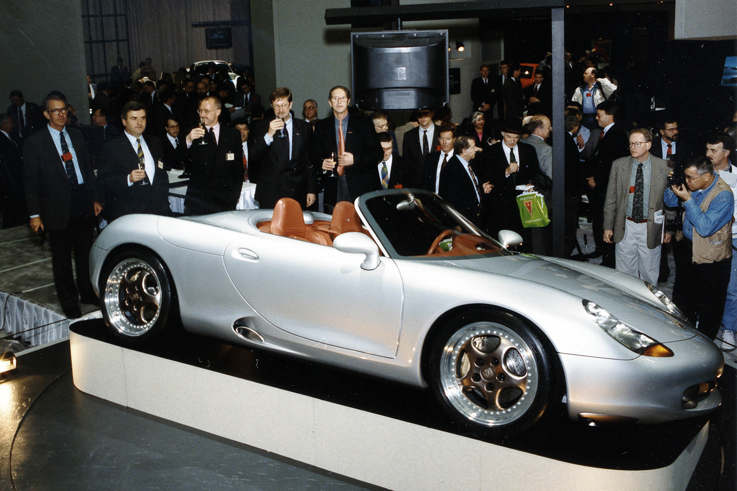 Autoweek magazine named the Boxster “Best in Show” in its subsequent issue, writing of the fervor, “Auto execs almost outnumbered the journalists at the unveiling of a concept that figures to be the basis of a sub-$40,000, mid-‘90s model-year roadster.” Porsche adds that attendees even wrote blank checks for the car, which, again, was a concept with no concrete delivery date. (And people think the preorders for the Tesla Cybertruck and Hummer EV are a new phenomenon.)