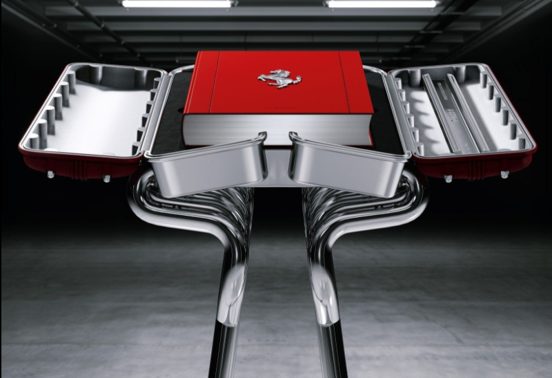 However, for that same amount you are able to get a Ferrari coffee table book, which comes with its own chromed-out stand that invokes the cylinder heads and exhaust pipes of one of the automaker’s iconic V-12 engines.