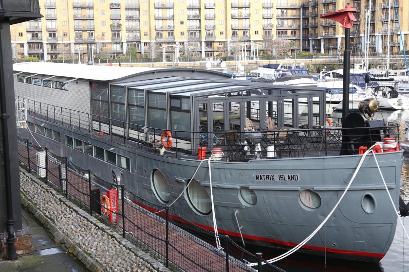 The priciest houseboat in the U.K.—the so-called Matrix Island—is up for sale, and it cost six times more than the average London home.
