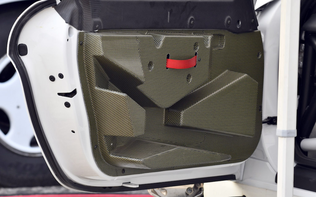 Basically, it’s the Clubsport race car you’ve ogled more than once, now with all the rally fixings: a front-mounted light bank, full underbody protection, roof scoop and “an energy-absorbing foam element … in the doors.”