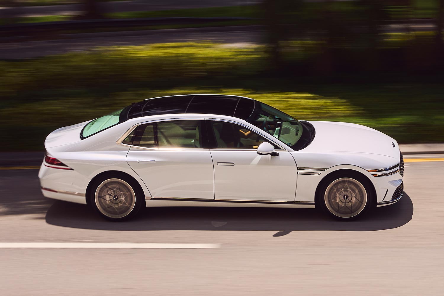 As a luxury EV, it’s endlessly compelling. It’s also engaged in sibling rivalry.Just as important in a sedan of this size are the rear seat specs, and the Genesis excels here as well. Full-recline thrones with heating, cooling and massage surpass the comfort offered by the G90’s forward buckets, with final say over entertainment and climate settings falling readily to hand by way of the car’s full-length center console and control center. All of this is wrapped in parlor leather that further enhances a rider’s insulation from the hustle and bustle on the other side of the thick glass, with an additional reality disconnect available from its three-sided privacy screens.