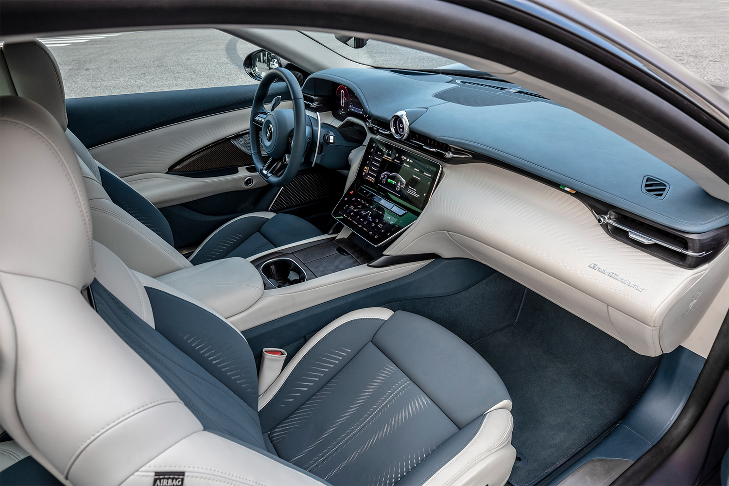 Two gas-powered models, the Modena and Trofeo, offer a classic fusion of luxury, speed and Italian panacheThat’s not too shabby, but what truly sets the Folgore apart from other performance EVs is how Maserati has solved the issue of battery mass. Electric cells are heavy and the Folgore weighs in at 4,982 pounds; that’s roughly 1,000 more than its gas-burning siblings. Most EVs deploy their batteries in what’s known as a “skateboard” layout, low and flat beneath the floor. But the Maserati engineers created a T-shape configuration for the Folgore that runs down the center of the car, where you’d find the transmission in an ICE vehicle. The design allows the driver to sit lower than in most EVs. In fact, the seating position is exactly the same as in the combustion-engine models.