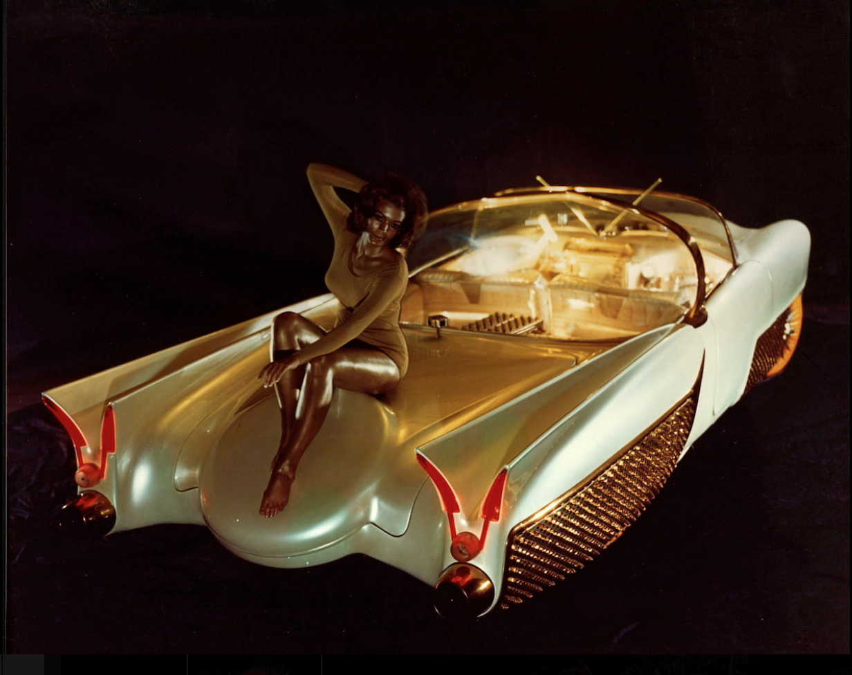 Outfitted with a backseat packing a built-in refrigerator, cocktail bar and mink carpeting, and a dashboard boasting a TV reel-to-reel player and radio, Barris’ creation was named the Golden Sahara thanks to a two-tone finish featuring 24-karat gold in place of chrome.