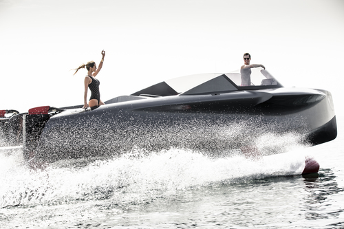 Intended to be used as a tender for a larger vessel, a weekend on the water or quick trips, the Foiler was designed to be elegant and classy as well as sporty and aggressive. “It turns like a sports car,” Vieujot said. “Since the only contact point is the foils, it doesn’t have to push any water away, thus turning with very strong g-force.”