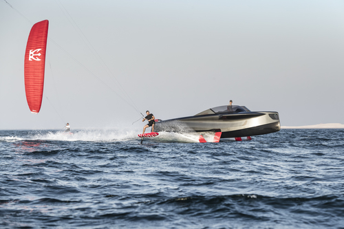 Nicknamed the Flying Yacht, the Foiler’s hydrofoil system quite literally raises the vessel above the competition by raising it nearly five feet above the water, making it extremely resistant to wave interference.