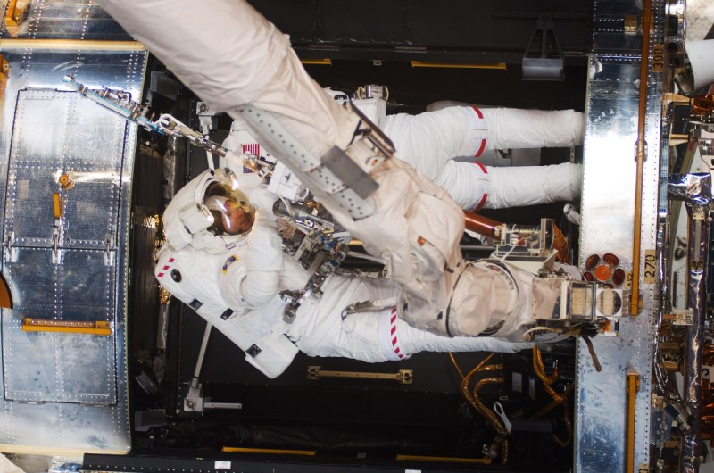 Still, once he was out there, it was all worth it. “From Hubble you can see … the curvature of the Earth,” he writes. “You can see this gigantic, bright blue marble set against the blackness of space, and it’s the most magnificent and incredible thing you’ve ever seen in your life. Seeing the Earth framed through the shuttle’s small windows versus seeing it from outside was like the difference between looking at fish in an aquarium versus scuba diving on the Great Barrier Reef.”
