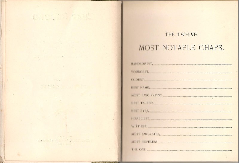 A chap record was a blank notebook where women could keep notes on men they dated, similar to the way Yelp reviewers rate local businesses. Each page had Name, Date, Place, and Opinion slots to fill out, as well as a separate section for the lady’s Twelve Most Notable Chaps (see? Listicles were cool way before clickbait existed).
