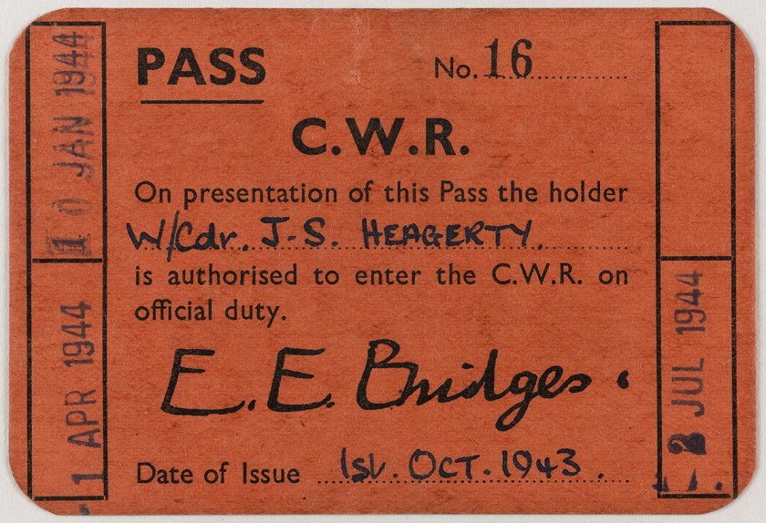 Entrance Pass Belonging to Wing Commander J.S. Heagerty