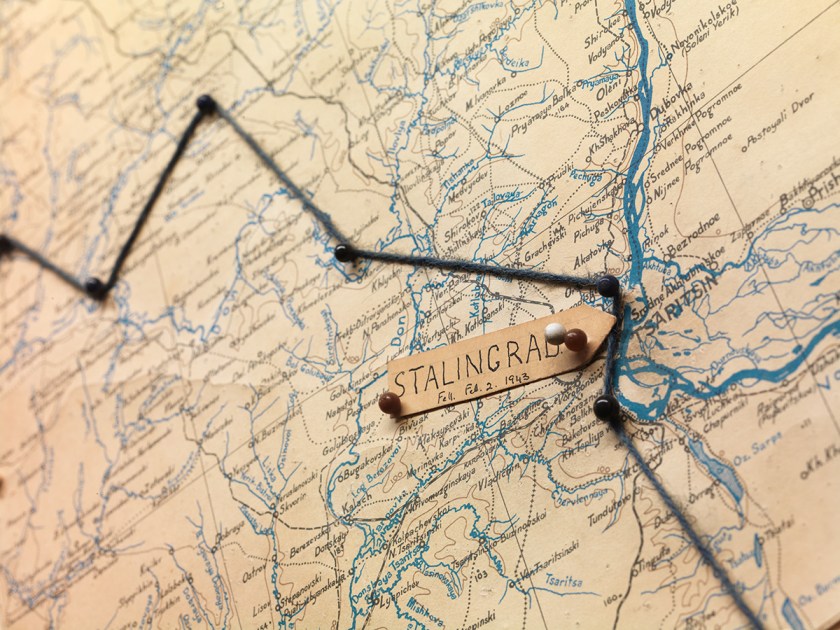 “The large map on one wall of the Annex spent much of the war hanging in the main Map Room. It charts in great detail the devastating advance of the German forces in Russia in 1941–1942 and their gradual retreat in the years that followed.”