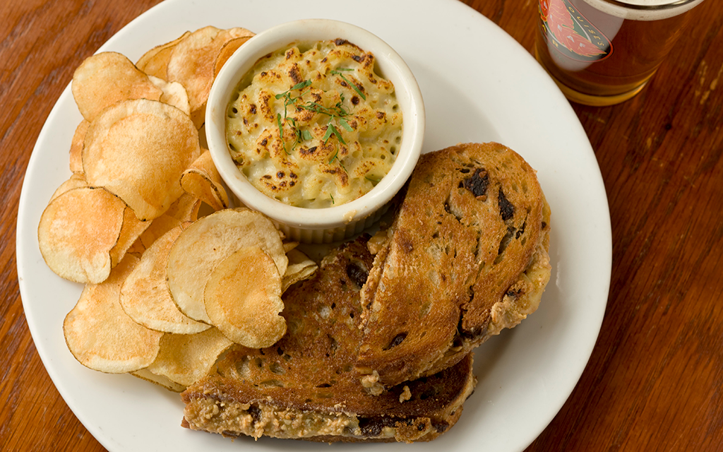 Some say that if it ain’t broke, don’t fix it. One might say that about a classic peanut butter and jelly sandwich. But the beer haven known as Hopleaf Bar has elevated this childhood favorite with housemade cashew butter, fig jam, raclette cheese and sourdough, all pan-fried to perfection. Adding to the indulgence are a side of Stilton mac-and-cheese and housemade potato chips.