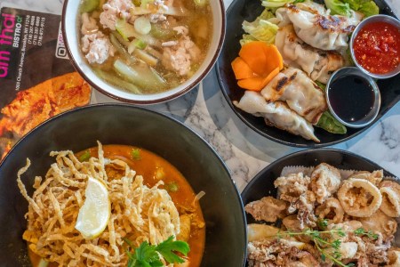 The Thai Chili Gin Martini is made with an exclusive house gin from nearby Tamworth Distilling. Bangkok Mai Tai spices up the typical formula, and diners can choose from the juicy Summer Sangria, a Mango Sticky Rice Martini, Monkey On the Beach or Happy Elephant to cool the palate.