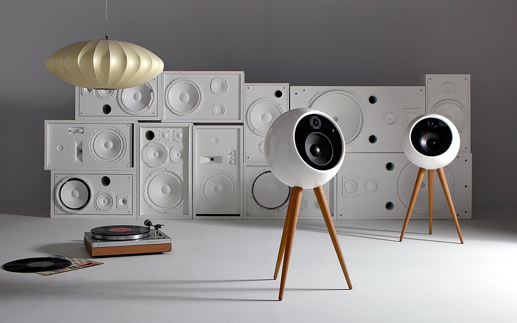 Housed in a polymer sphere that stands on three wooden legs made of either teak or ash, these speakers have bi-amplifiers with a max payload of 150-watts. The wifi uses app-X and AAC conversion to ensure the highest quality digital sound; you can also be pair the rig with your TV.