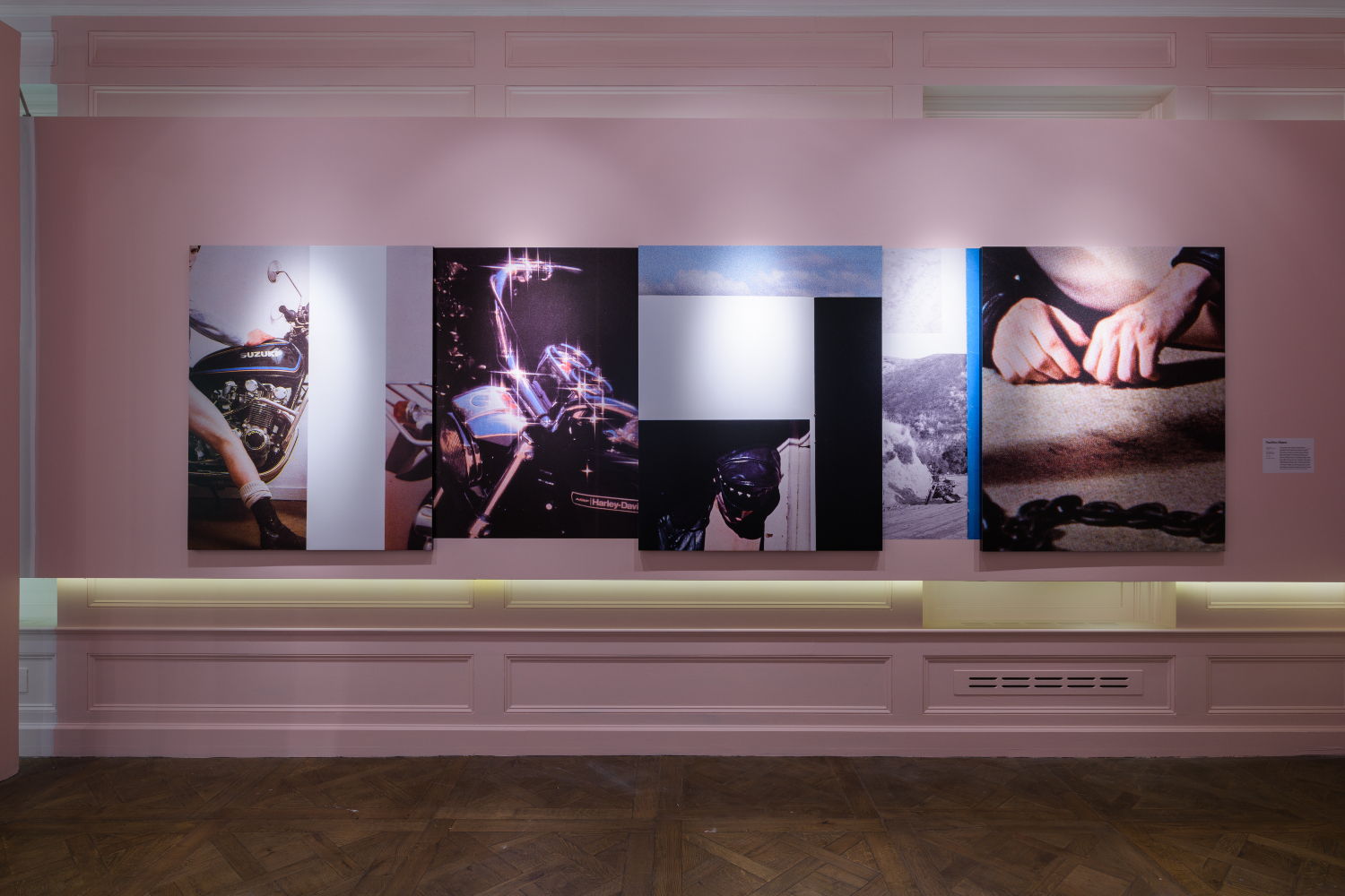 There’s a glimpse of a muscular thigh against a Suzuki motorcycle, a leather studded hat on a face obscured in shadow, a length of black chain resting near a set of vulnerable hands. When I look at artist Pacifico Silano’s “Easy Rider,” I get it. Silano brings together subsections of images culled from his collection of vintage gay pornography, and, in doing so, “creates work that is obliquely erotic, always suggesting pornographic action,” according to the Museum of Sex.
