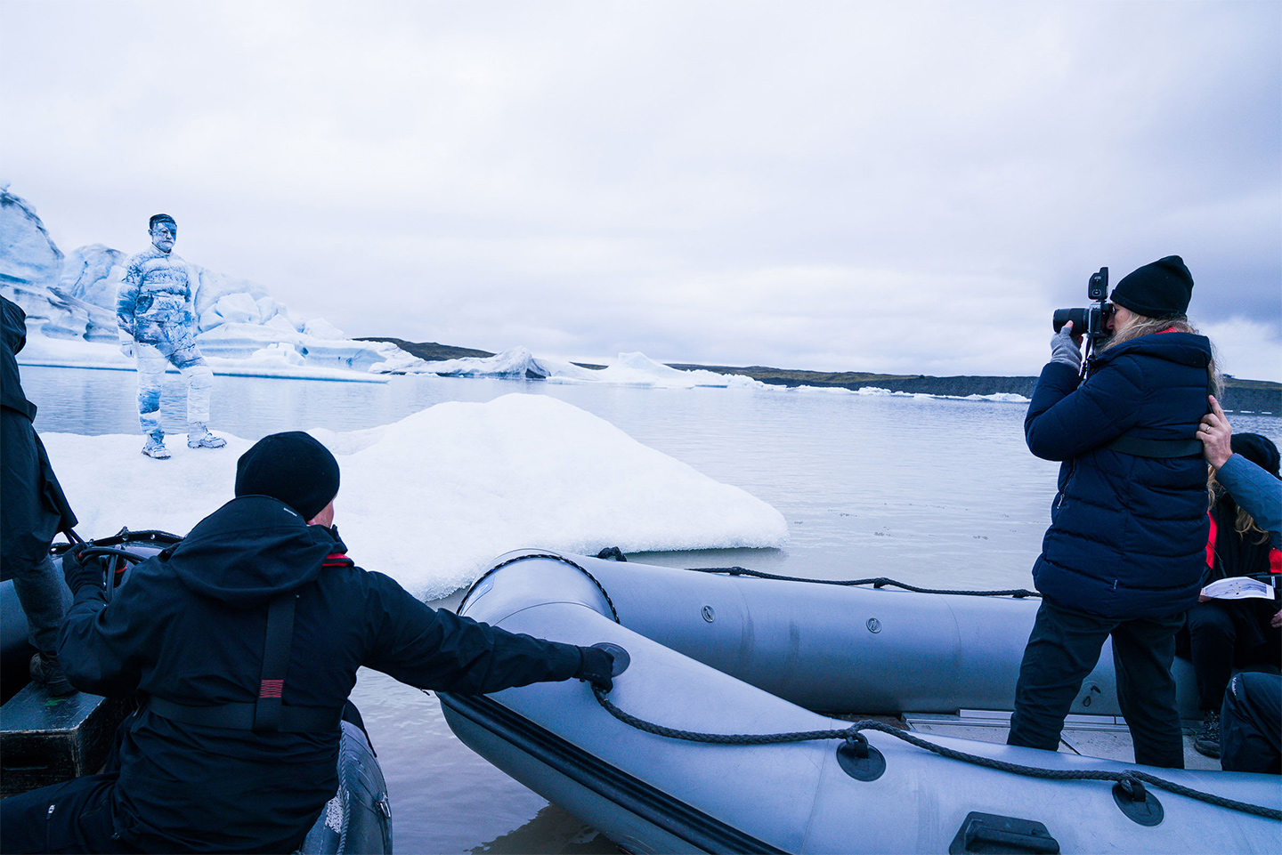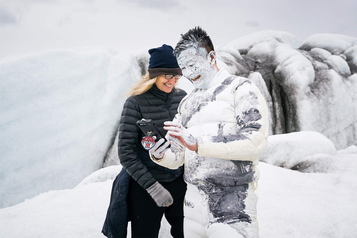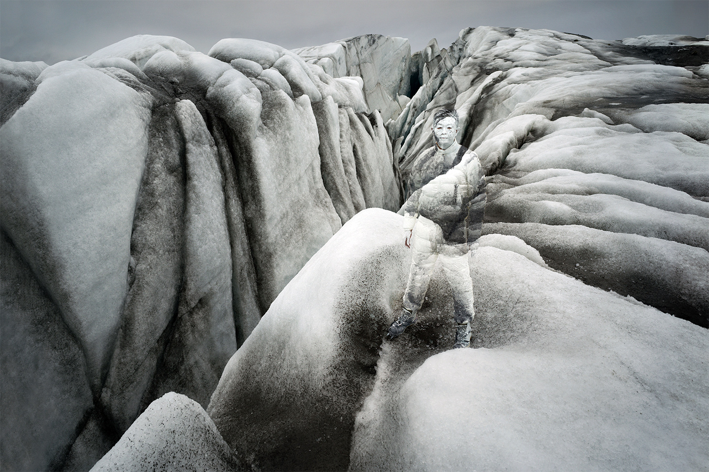 Moncler just launched a new advertising campaign featuring a fantasy-like scene of Icelandic glaciers and ‘Invisible Man‘ artist Lui Bolin. Shot by American photographer Annie Leibovitz, the ad echoes the fairy-tale atmosphere of the Spring/Summer 2017 ad, which also featured Bolin and Leibovitz, writes Trendland.