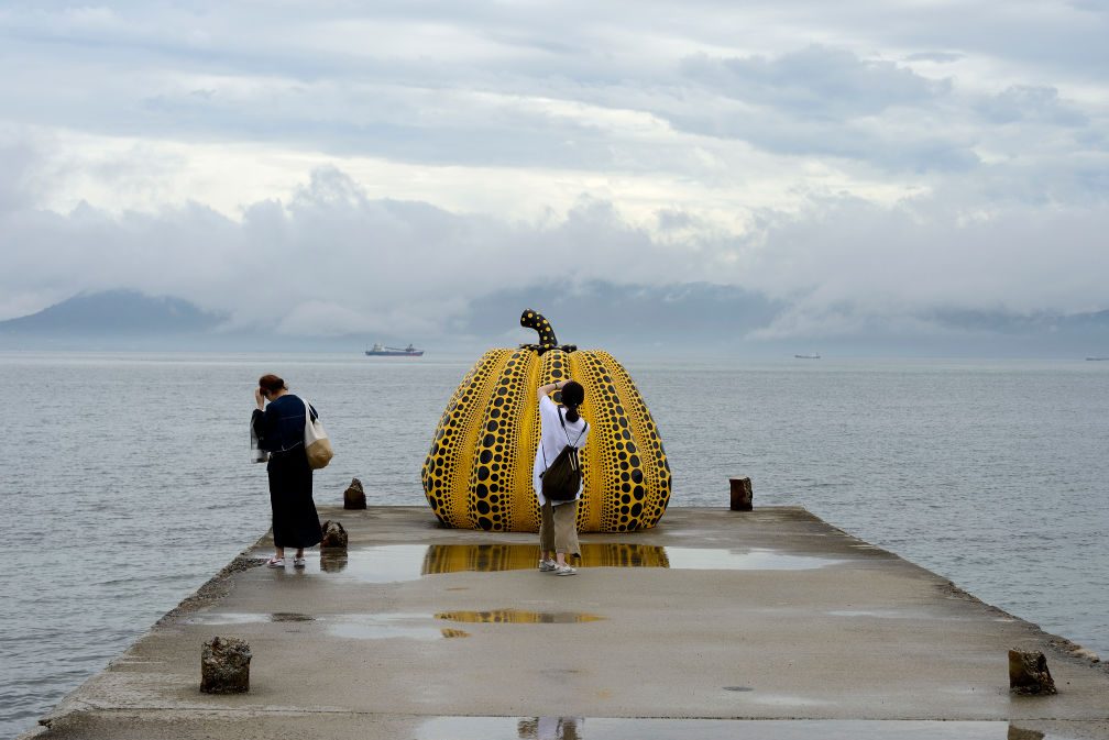 One of Yayoi Kusama's many pumpkin-themed sculptures.