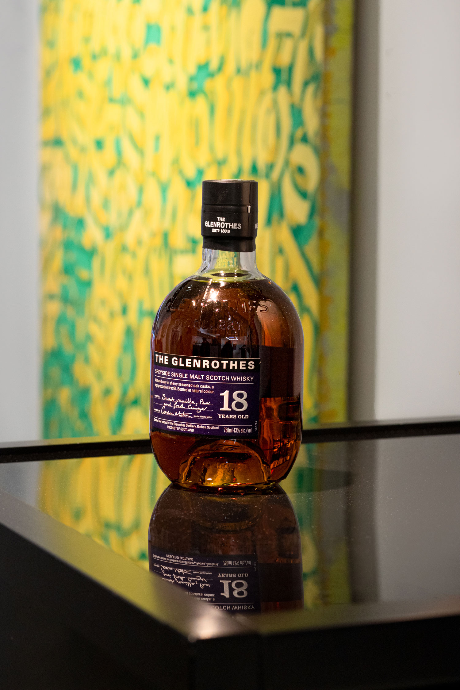 “Being an artist, keeping odd hours, I made friends with bartenders and chefs who were just as into what they were doing as I was,” he says. “I got into making cocktails, and a lot of my jazz-inspired works were influenced by the stories of the monks in Chartreuse making liquor. I created The Glenrothes scenes in much the same way.”