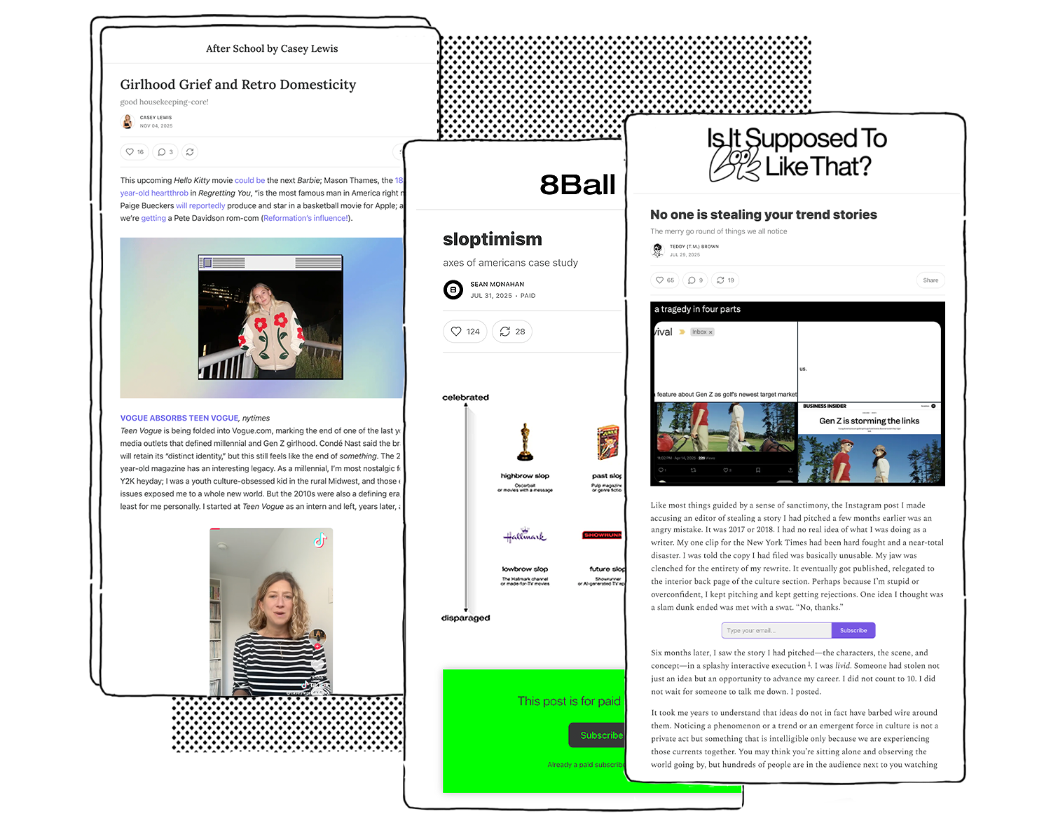 Rizzler? Rushtok? Six-seven? These words may mean nothing to you, but if you remotely care that they do mean something at all, After School is a must-read. Ex-New York Magazine editor Casey Lewis may not be Gen Z (or worse, Gen Alpha) but she is excellent at delivering youth culture — everything from social media trends to in-depth commercial analysis — in a digestible and highly enjoyable weekday newsletter. — PS