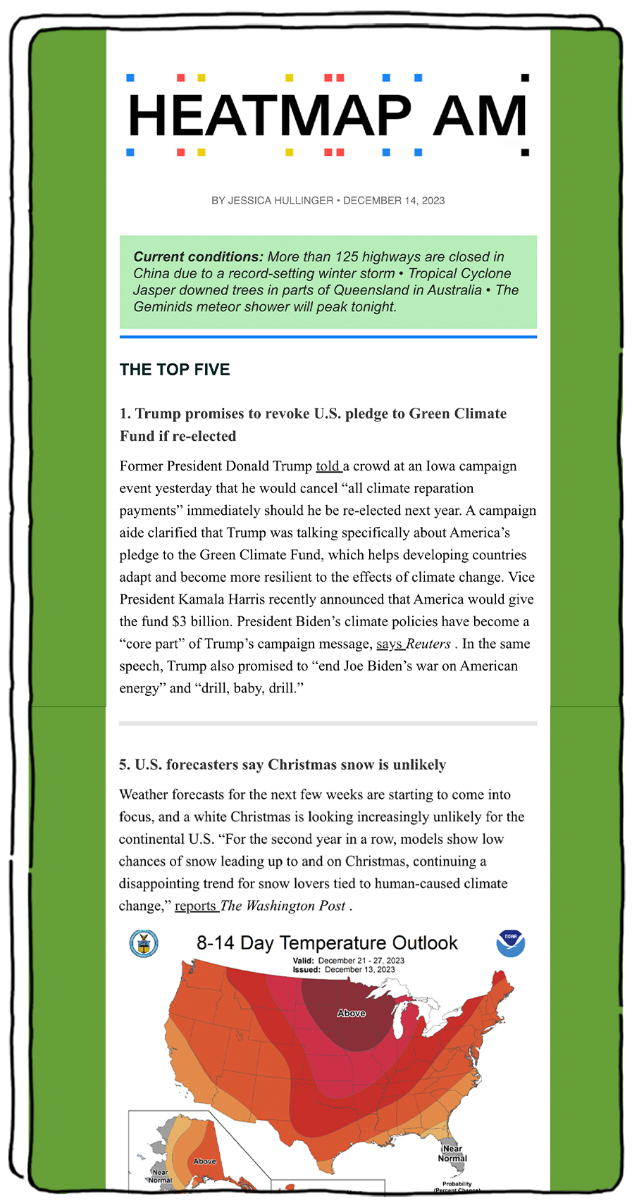 You hoover up business, political and sports news on the daily — shouldn’t you be consuming climate news, too? Heatmap’s AM version offers a top-of-the-morning briefing on the most important climate, energy and sustainability news you haven’t heard, from one of the best climate news companies. — PS