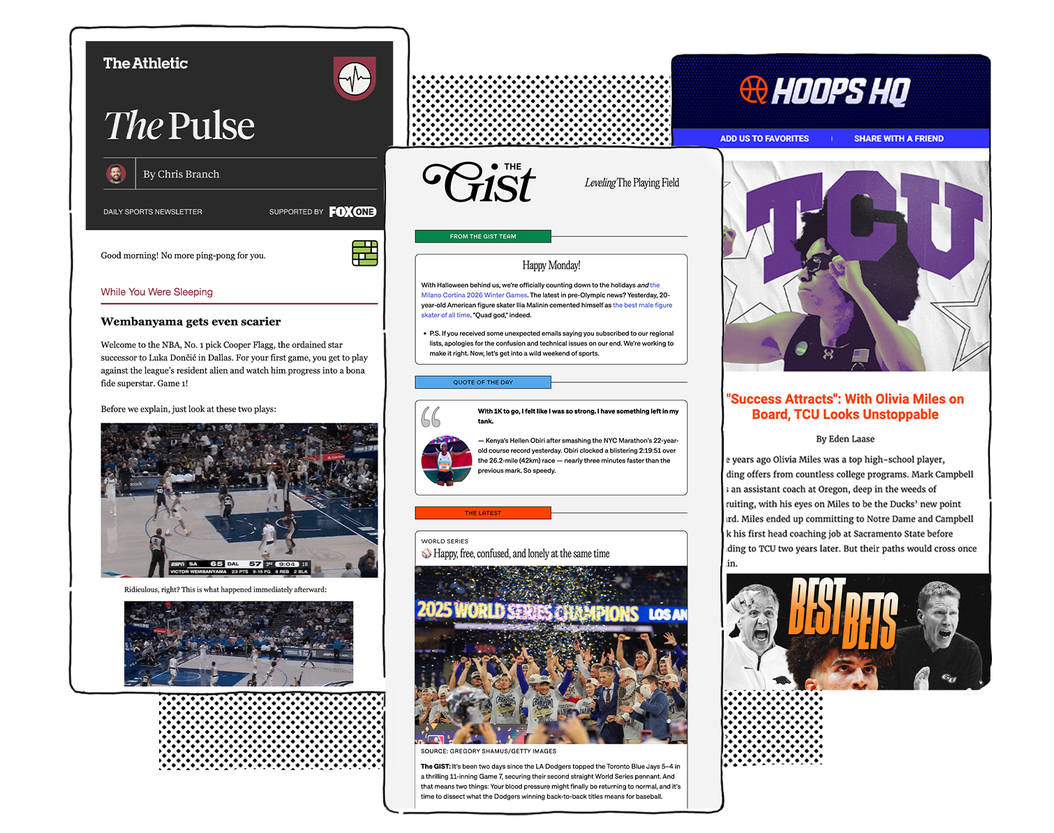From Hall of Fame sportswriter Seth Davis comes the deepest-reported newsletter in college basketball. Hoops HQ is delivered three-times weekly and staffed by a network of blue-chip insiders, Division I coaches and pro sports betters — it’s a do-everything email with a game-changing upside.