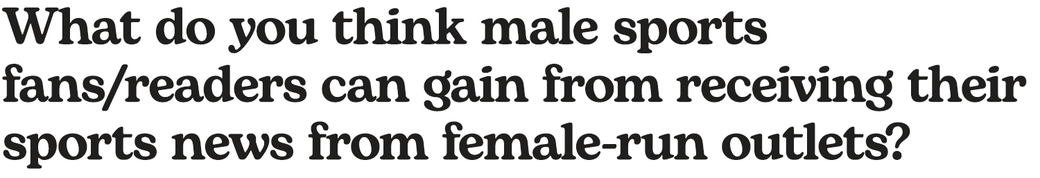 “I’d say it’s not about gender; it’s about broadening the narrative. About 20% of our audience identifies as male and is highly engaged. When men read sports news from female-run outlets like The GIST, they get to experience sports through a different lens, one that’s rooted in inclusivity, community, and emotional connection to the game.