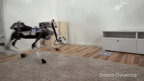 Spot’s attachable arm, with a gripping head fixed to the end, is able to hold its position while the rest of the body moves around. This lets SpotMini carry fragile objects steadily as the rest of his body avoids obstacles.