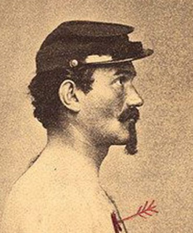 Twenty-year-old James Stokes. He was wounded at Gravelly Run, Virginia. His elbow later developed gangrene, as shown through this image. (U.S. National Library of Medicine)