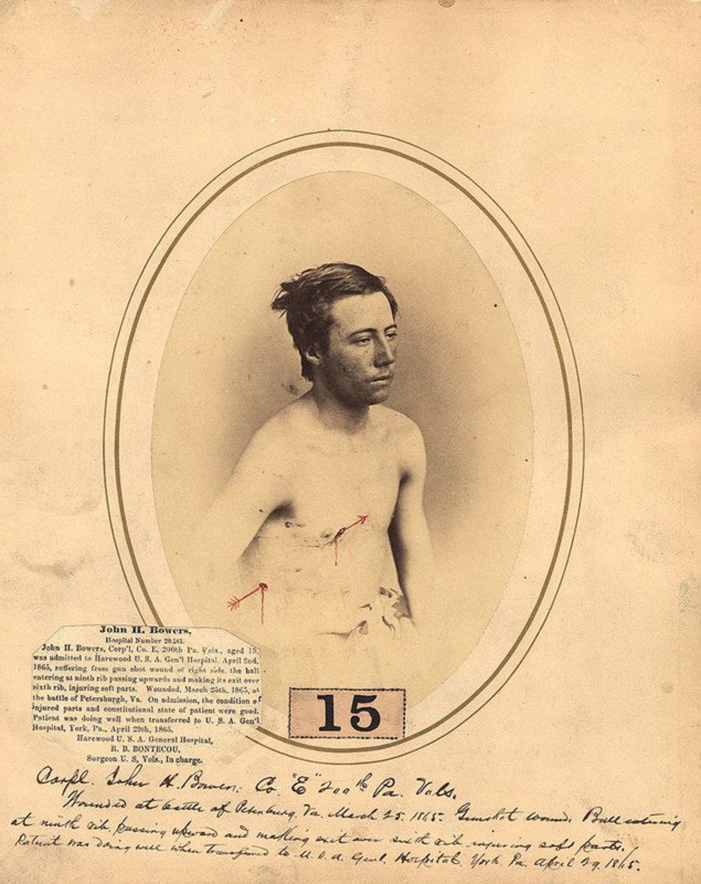 At just 19-years-old, John Bowers was shot at the Battle of Fredericksburg. (U.S. National Library of Medicine)