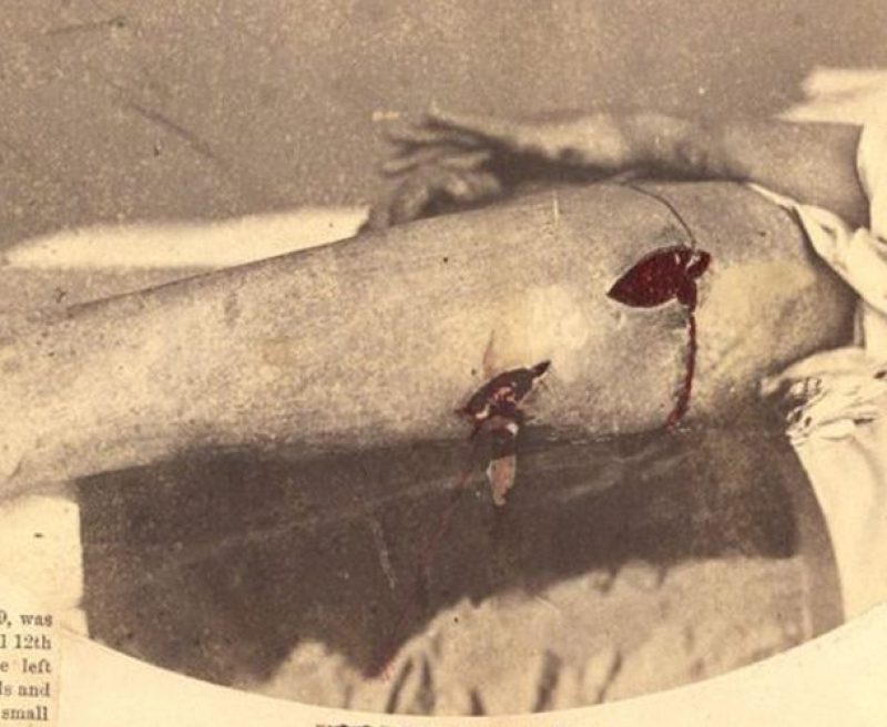 But Smithsonian Magazine writes, modern technology was also able to help some of the wounded soldiers. Reed Bontecou, a doctor, decided to use photography, an innovation at the time, to document the casualties of the Civil War. Bontecou practiced medicine for the army in New York when the war broke out and eventually became Surgeon-in-Chief of the war’s biggest federal general hospital. Inside the hospitals, using cartes de visite, he took the pictures and then marked them with a red pencil to show the trajectory of the bullets. The small, palm-sized photographs are pretty haunting, but they helped teach field surgeons about the wounds and allowed veterans get compensation once the war was over.